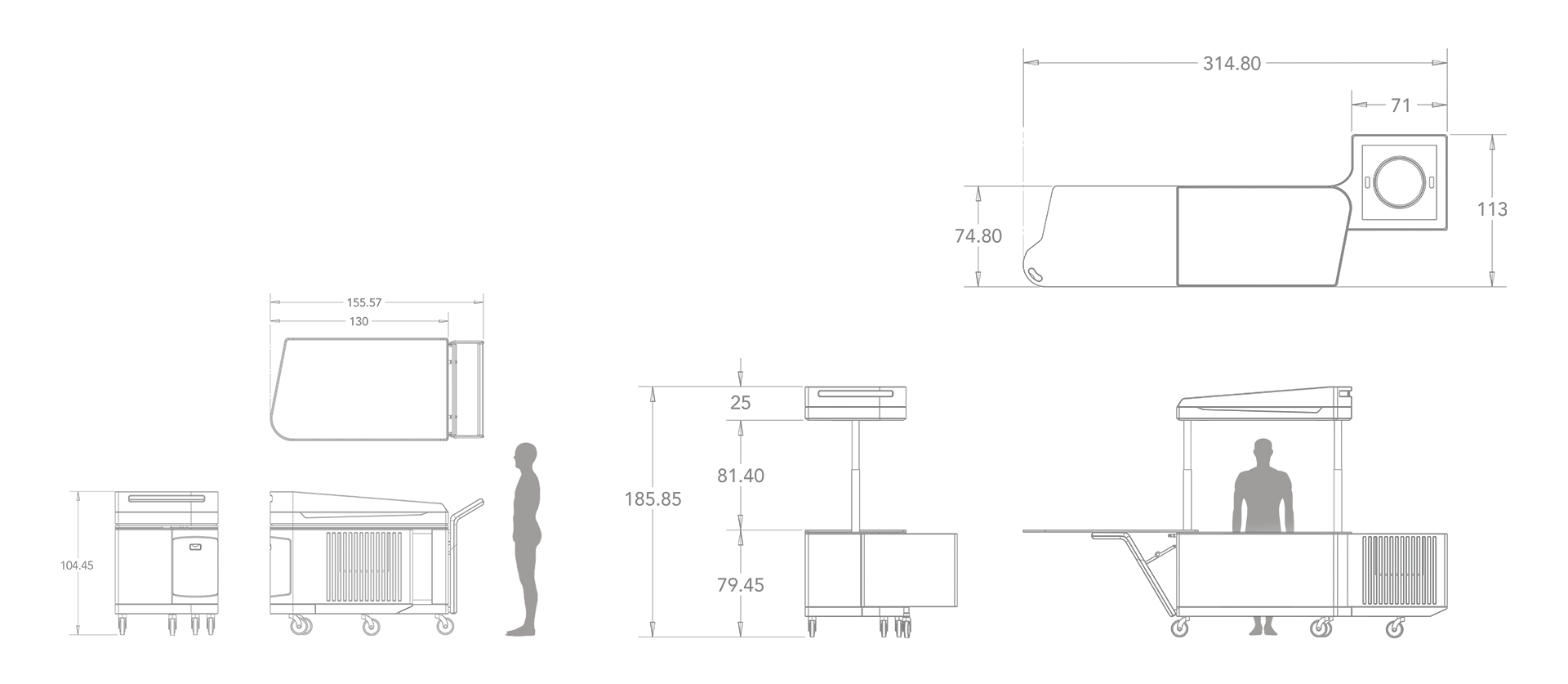 Loop is a new food cart for the world famous Taiwanese night markets. Its purpose is to elevate the image of the Taiwanese night markets, bringing their deep cultural traditions into the 21st century with unequalled functionality. It has a small volume when closed and is easily moved and stored. When open, it provides more dining space and workspace for both customers and vendors alike.